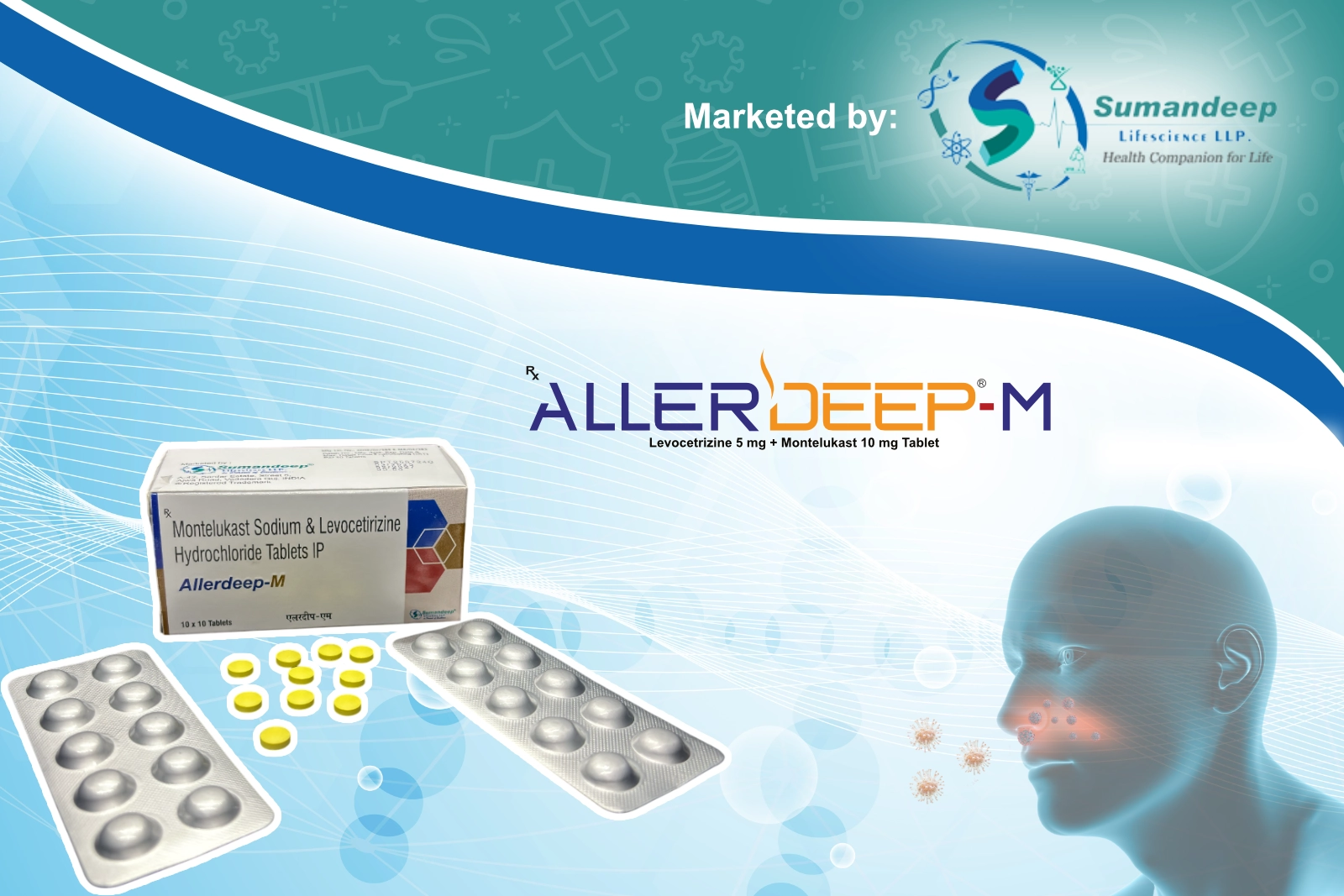 Allerdeep-M, a medication containing Montelukast Sodium and Levocetirizine Hydrochloride, is used to treat a range of allergic conditions.