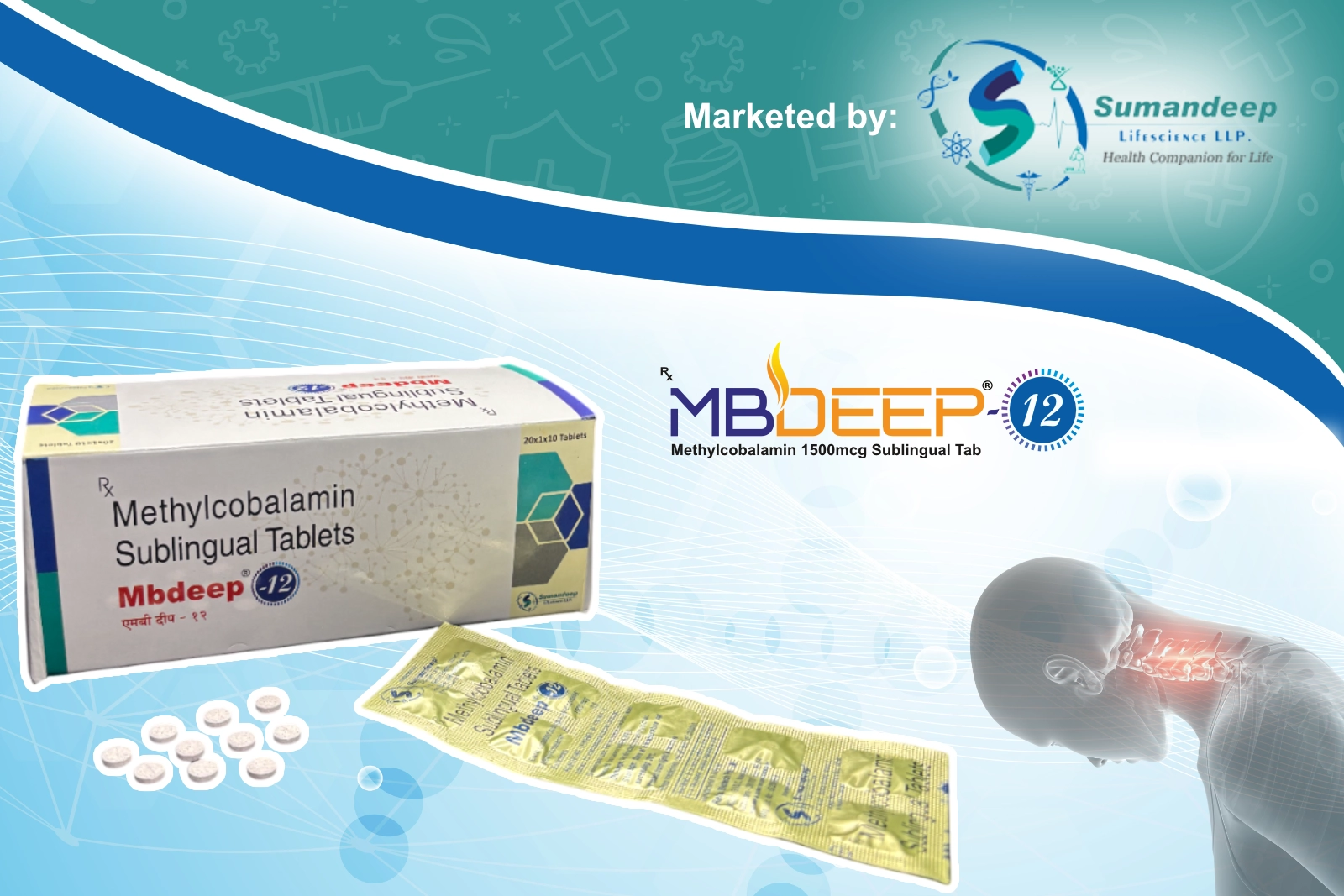 The brand Mbdeep-12, which contains methylcobalamin in sublingual tablet form, is designed for enhanced absorption. Sublingual administration, where the tablet dissolves under the tongue, allows the medication to be absorbed directly into the bloodstream, bypassing the digestive system.